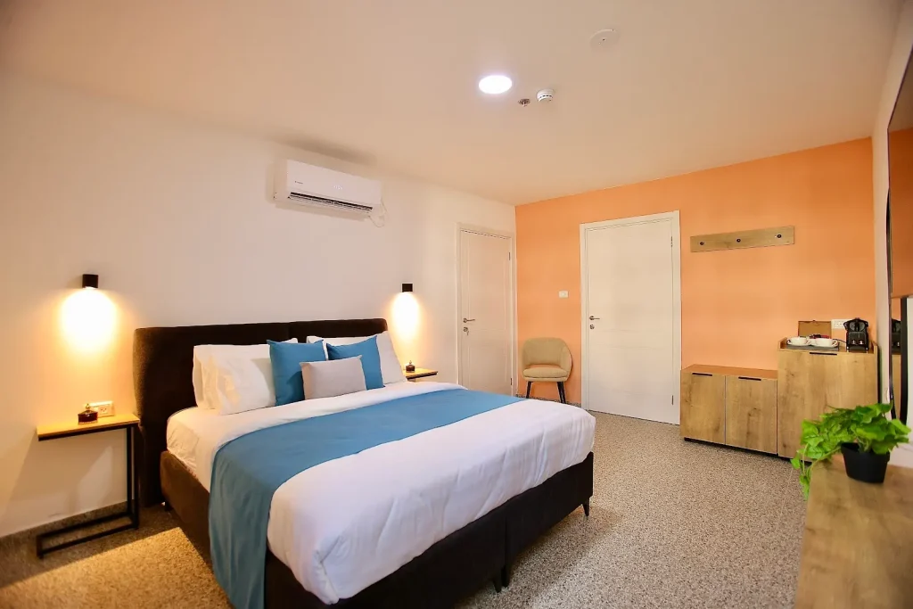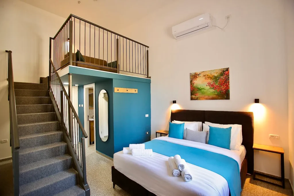 אבזור מלא : מיני מקרר, טלוויזיה חכמה, פינת קפה, Wi-Fi מהיר, מזגן